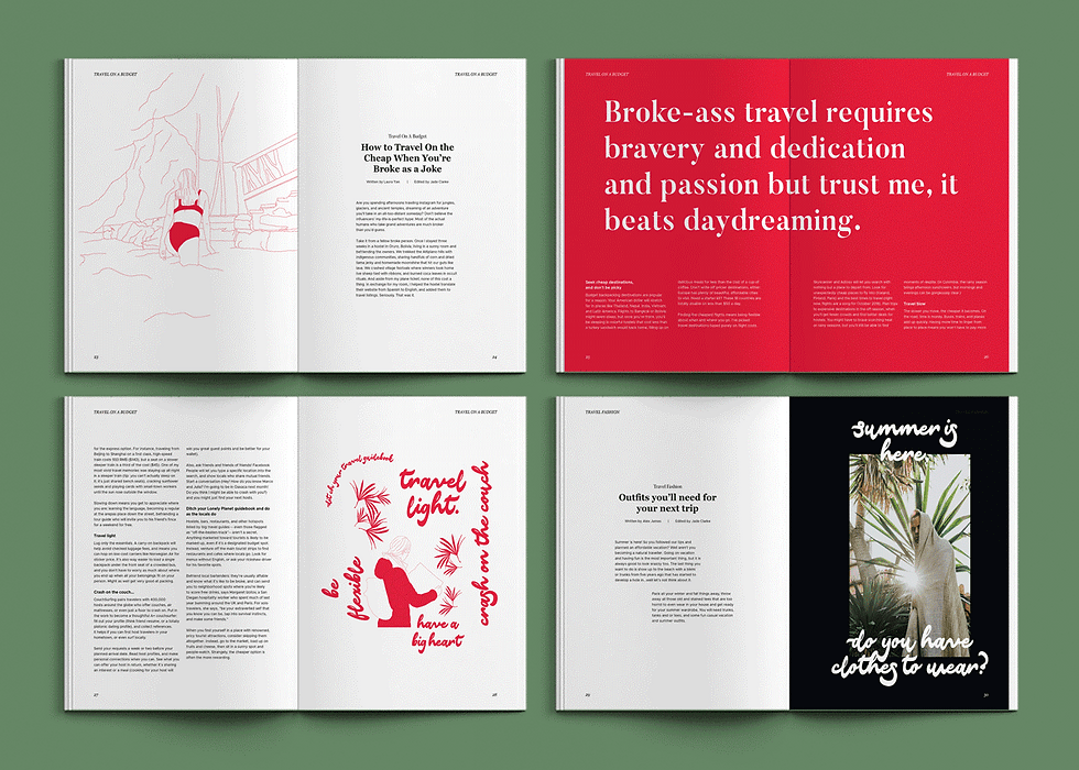 Experience Beyond is a travel magazine concept that brings you one step closer to making your travelling dreams become a reality. This magazine is filled with all sorts of goodies on how you can travel without blowing your budget, packing hacks, and destinations and activities that you have to put on your bucket list.